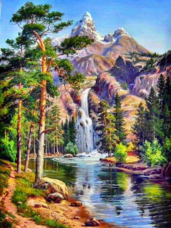 Bring a breathtaking waterfall landscape to life — one sparkling diamond at a time