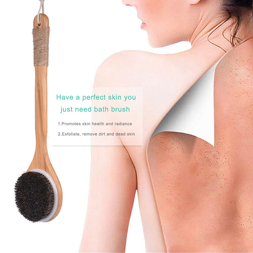 • Long handle for easy back cleansing